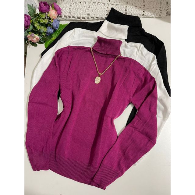 Kit 3 pc Blusa gola alta tricot feminina inverno manga longa TAM :U 36 até 42