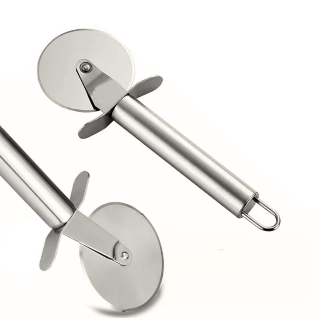 Kit 3 Peças: 2 Carretilhas Cortador de Massas (Pastel e Pizza) + 1 Espátula para Bolo em Aço Inox
