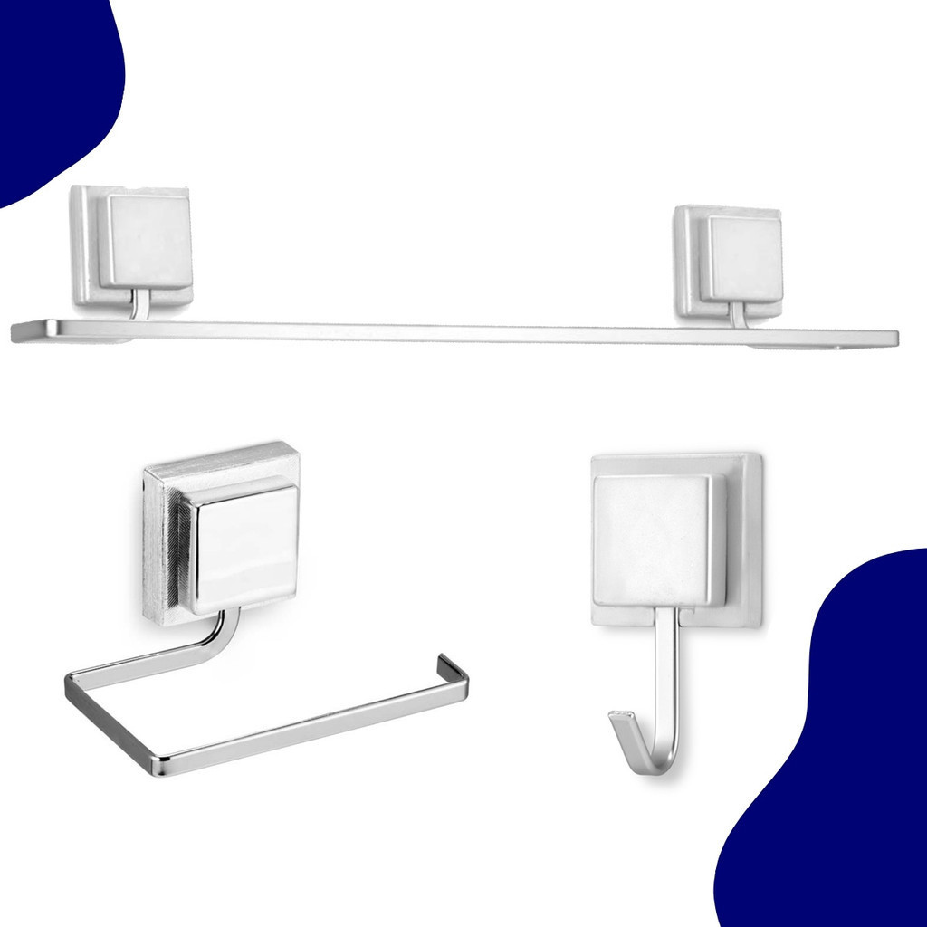 Kit 3 Peças Banheiro Papeleira Gancho Toalheiro De Banho Adesivo 3m Cromado Fixação Dupla Face Arthi. Com design clássico e elegante, o Kit Banheiro 3 Peças Arthi é ideal para organizar seu banheiro. A fixação é através de fita adesiva dupla face 3M extra fortes, sem o uso de ferramentas e furadeira. Além do tradicional tratamento superficial da Arthi os produtos são revestidos com uma camada extra do protetivo especial, garantindo cores vivas, além de maior resistência contra ferrugem. Conteúdo Da Embalagem: • 01 Gancho • 01 Toalheiro de Banho • 01 Papeleira Importante: Garantia de 3 Meses. Valor do Kit. Imagens Meramente Ilustrativas. Não nos responsabilizamos pelo mau uso do produto.