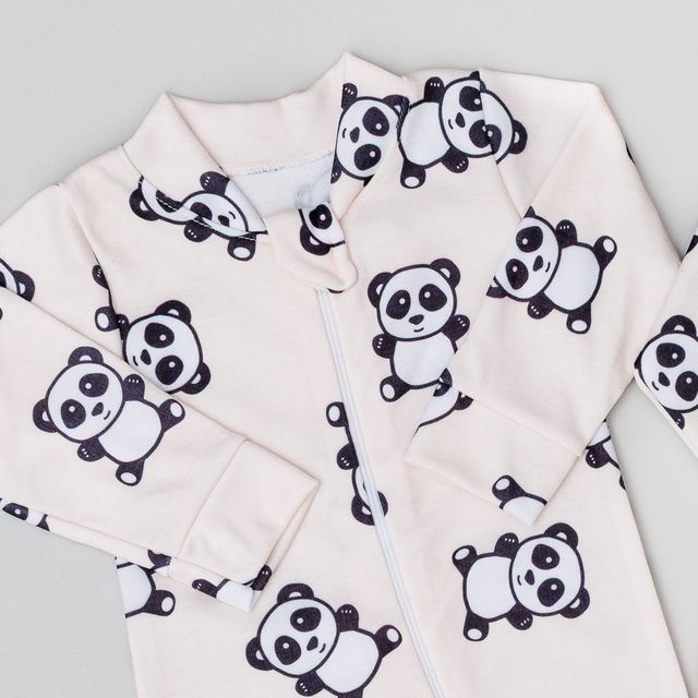 Kit 3 Peças Bebê Suedine Panda Off Unissex Antialérgico 100% Algodão Body Calça e Macacão Longo