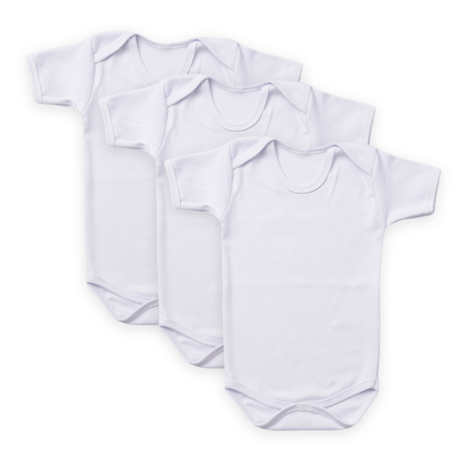 KIT 3 PEÇAS BODY BEBÊ BRANCO SUEDINE 100% ALGODÃO