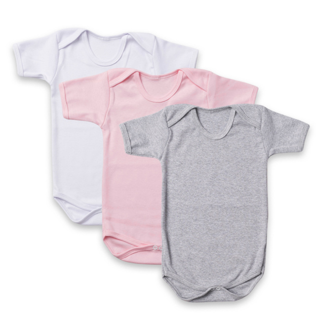 KIT 3 PEÇAS BODY BEBÊ MANGA CURTA SUEDINE 100% ALGODÃO