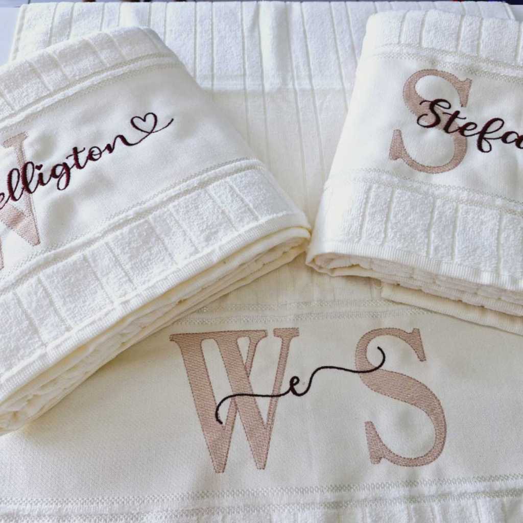 Kit 3 peças Casamento Toalha de Banho e Rosto Personalizada Com Bordado das Iniciais e Nomes