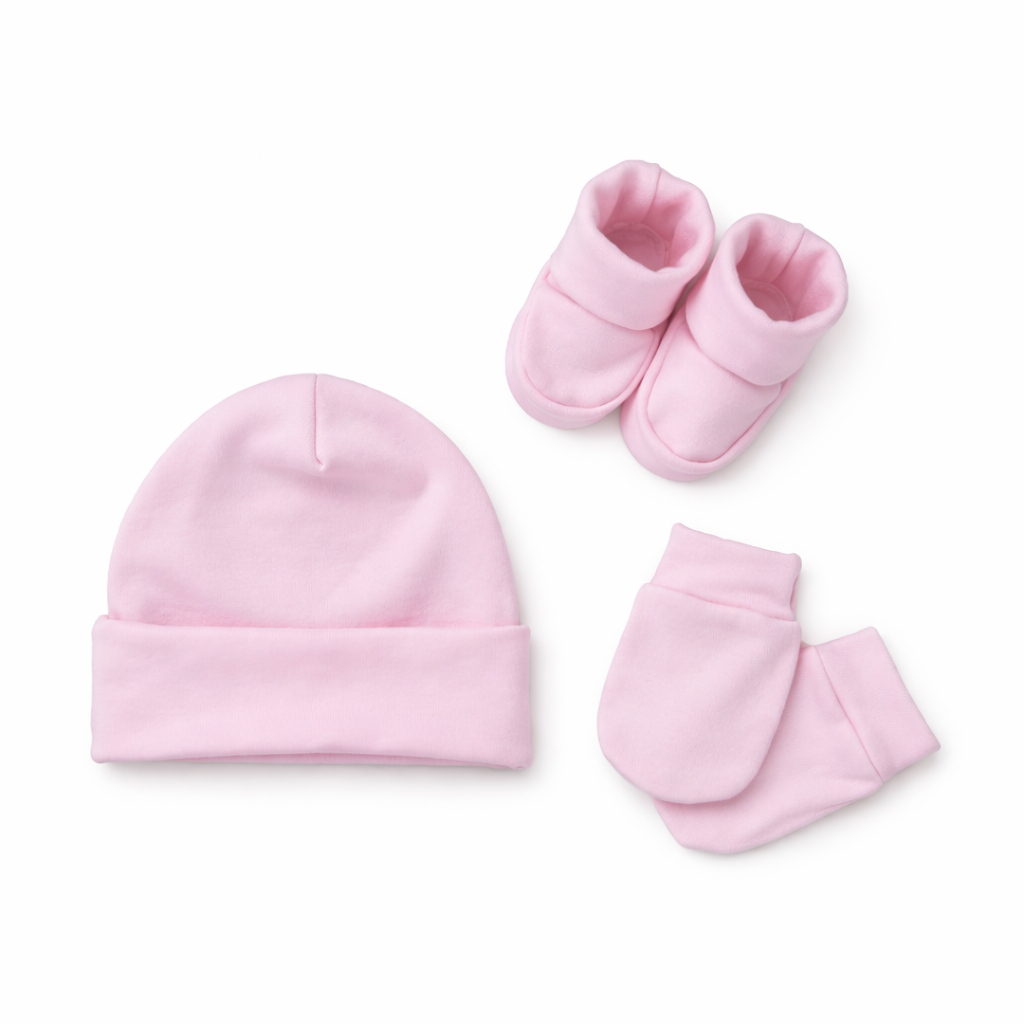 Kit 3 Peças Enxoval Bebê Recém Nascido Touca + Luvas + Pantufas Algodão Saída Maternidade