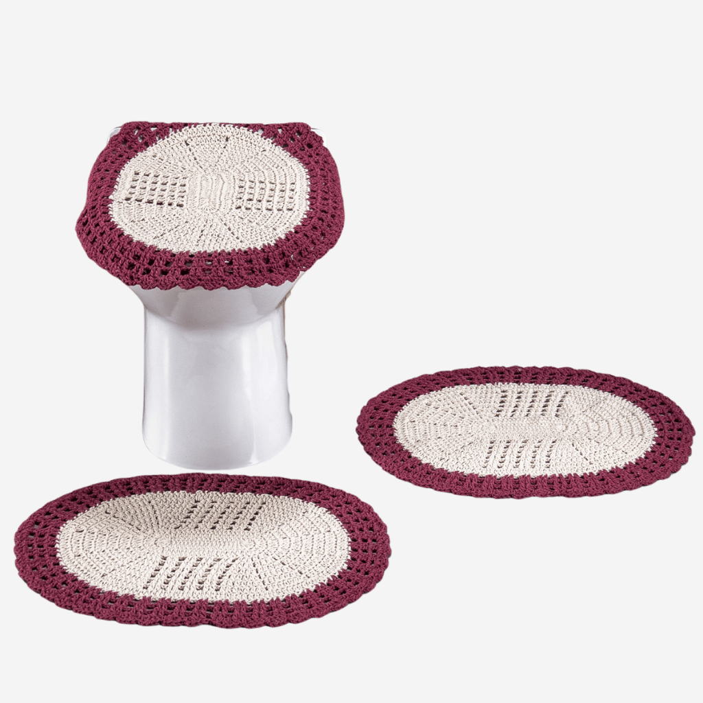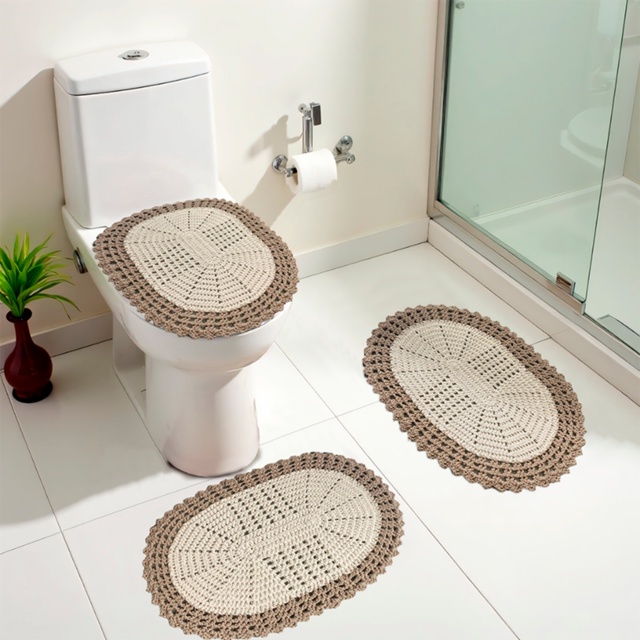 Kit 3 Peças Jogo De Banheiro Tapete Em Crochê 100% Algodão