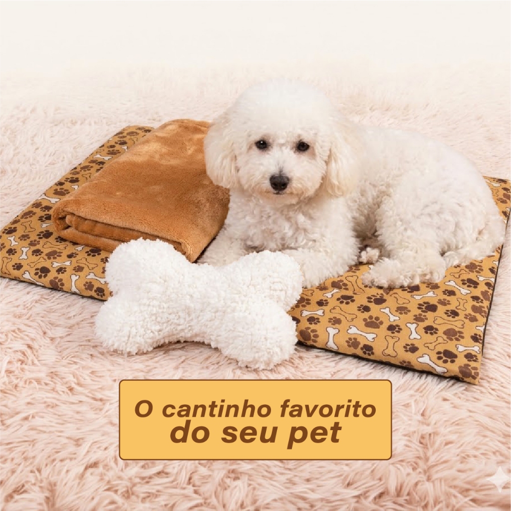 Kit 3 Peças Mantinha Ossinho Pet Colchonete Cobertor Coberta Cobertinha Osso Brinquedo Cachorro Gato