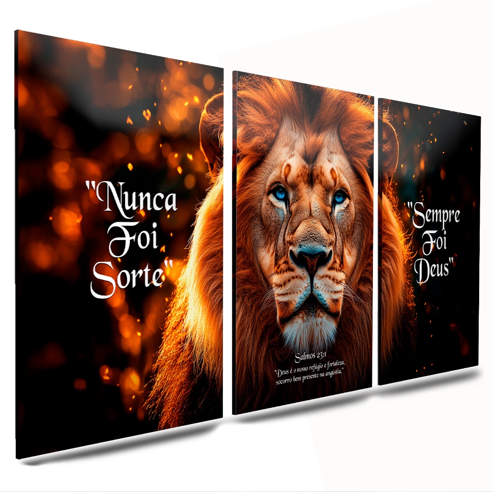 kit 3 peças placas mdf quadro decorativos para parede sala quarto escritorio leao frases