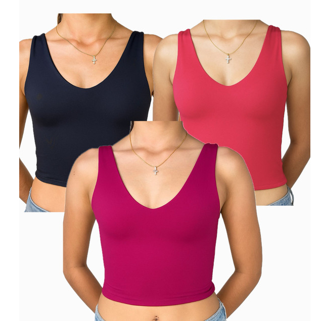 KIT 3 PECAS REGATA CROPPED COM DECOTE V DE SUPLEX POLIAMIDA PARA O VERAO