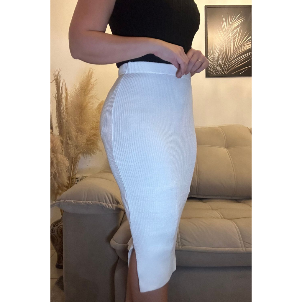 Kit 3 Peças Saia Canelada Tricot Trico Midi Moda Evangélica Fenda Lateral