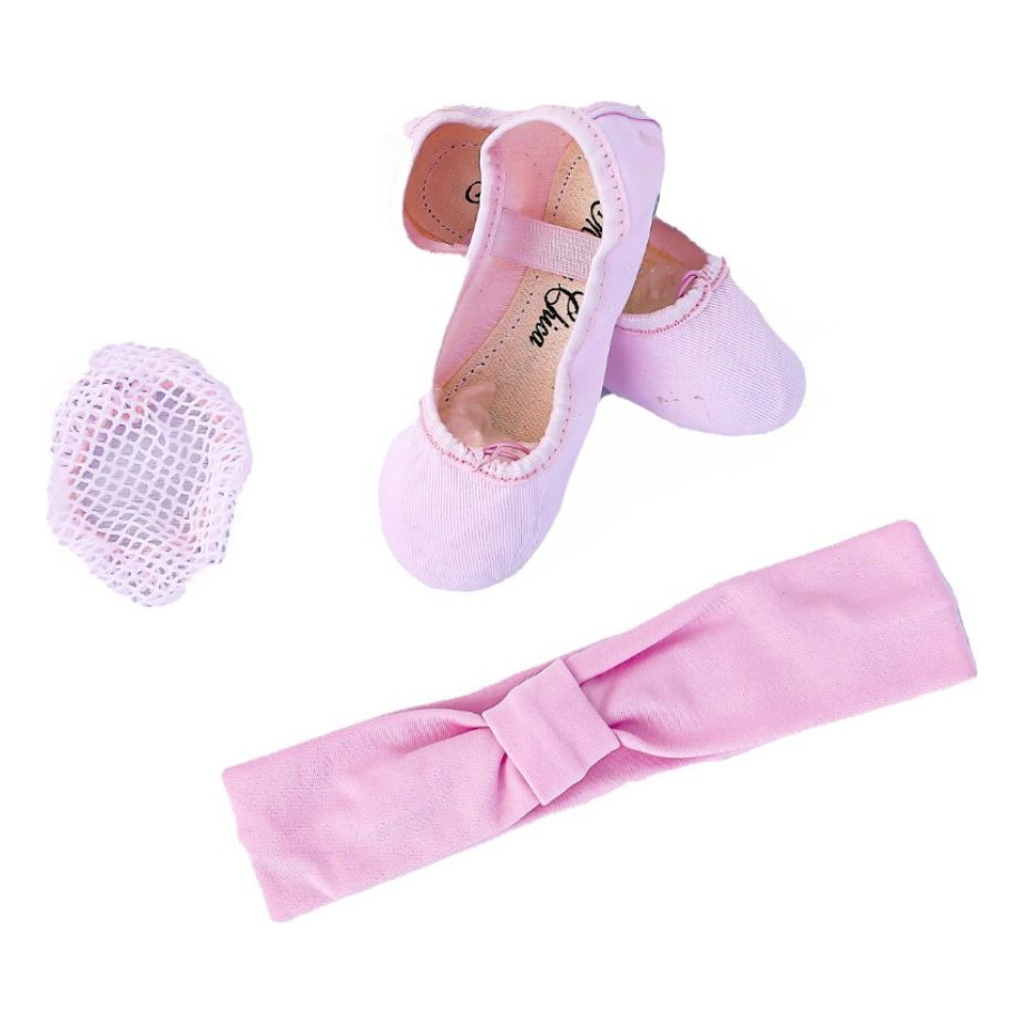 Kit 3 peças Sapatilha Faixa E Redinha Cabelo Ballet Jazz Infantil menina