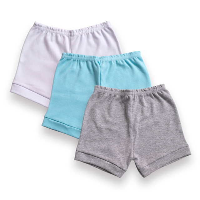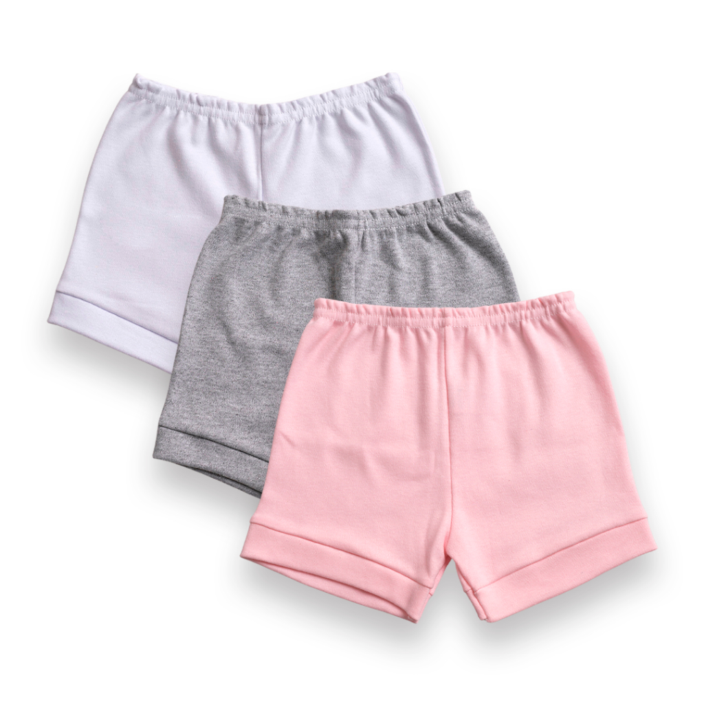 KIT 3 PEÇAS SHORT TAPA FRALDA SUEDINE 100% ALGODÃO COM PUNHO NA BARRA