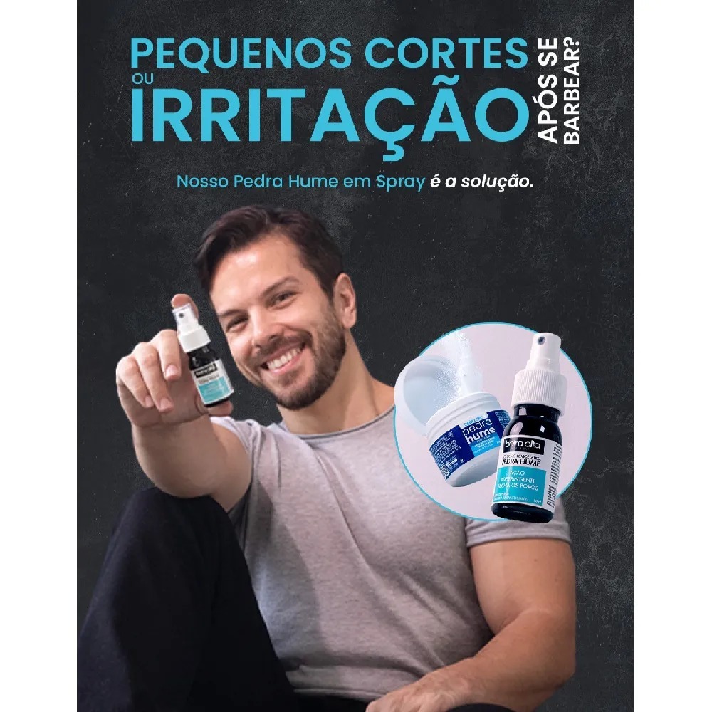 Kit 3 Pedra Hume Beira Alta Ação Adstringente 30ml O Kit com 3 unidades da Pedra Hume Beira Alta é ideal para quem busca praticidade e cuidado diário com a pele. Com ação adstringente, antisséptica e hemostática, é indicada para uso após barbear, depilação e pequenos procedimentos como remoção de cutículas. Auxilia no fechamento dos poros, ajuda a estancar pequenos sangramentos e contribui para prevenir infecções em cortes superficiais. Proporciona sensação de alívio imediato e cuidado eficaz para a pele. Modo de usar: após limpar e secar a área desejada, aplique o produto diretamente no local e deixe secar naturalmente. Conteúdo do kit:3 unidades de Pedra Hume Beira Alta Spray 30ml cada.