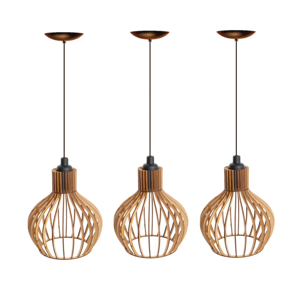 kit 3 Pendente Luminária de teto lustre para qualquer ambiente em MDF - 3ppc/sf