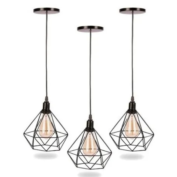 | Kit 3 Pendentes Luminaria Lustre Diamante Aramado Preto Cabo Regulavél este produto | R$ 55,68 | 13% | 4.7/5 | 202 |