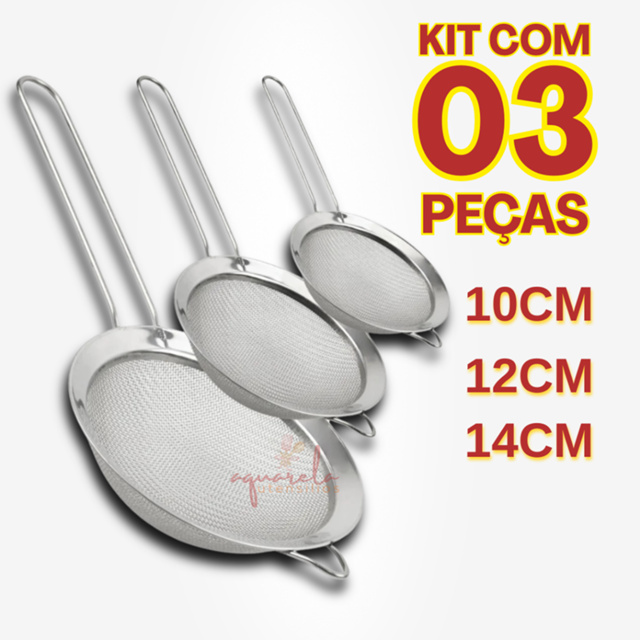 | Kit 3 Peneira Coador De Peneiras Aço Inoxidável Para Cozinha Peneir... | R$ 15,99 | 38% | 4.7/5 | 13 mil |
