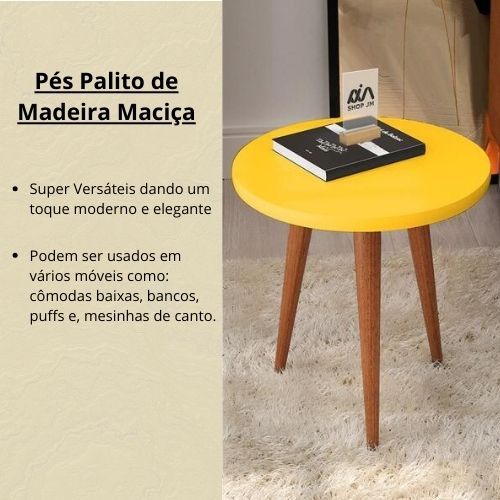 Kit 3 Pés Palito de Madeira 30 cm Chapinha Nylon + Parafusos Puffs Mesa Centro Escrivaninha