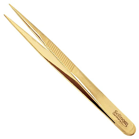 Kit 3 Pinças Solingen Ponta Agulha Designer Sobrancelhas Dourada