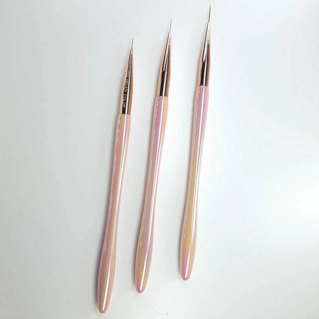 š„ Kit 3 Pinceis Fino para Decoração Unha Nail Art - Rose Perolado - Helen Color š„