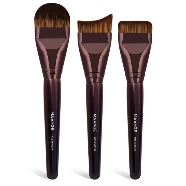 Kit 3 Pincéis Maange Maquiagem Profissional Para Base E Contorno Com Acabamento Impecável