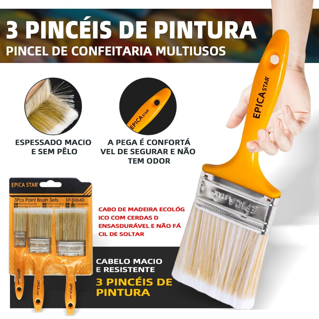 Kit 3 Pincéis Multiuso - Macios para Decoração, Churrasco e Pintura | Cerdas Suaves