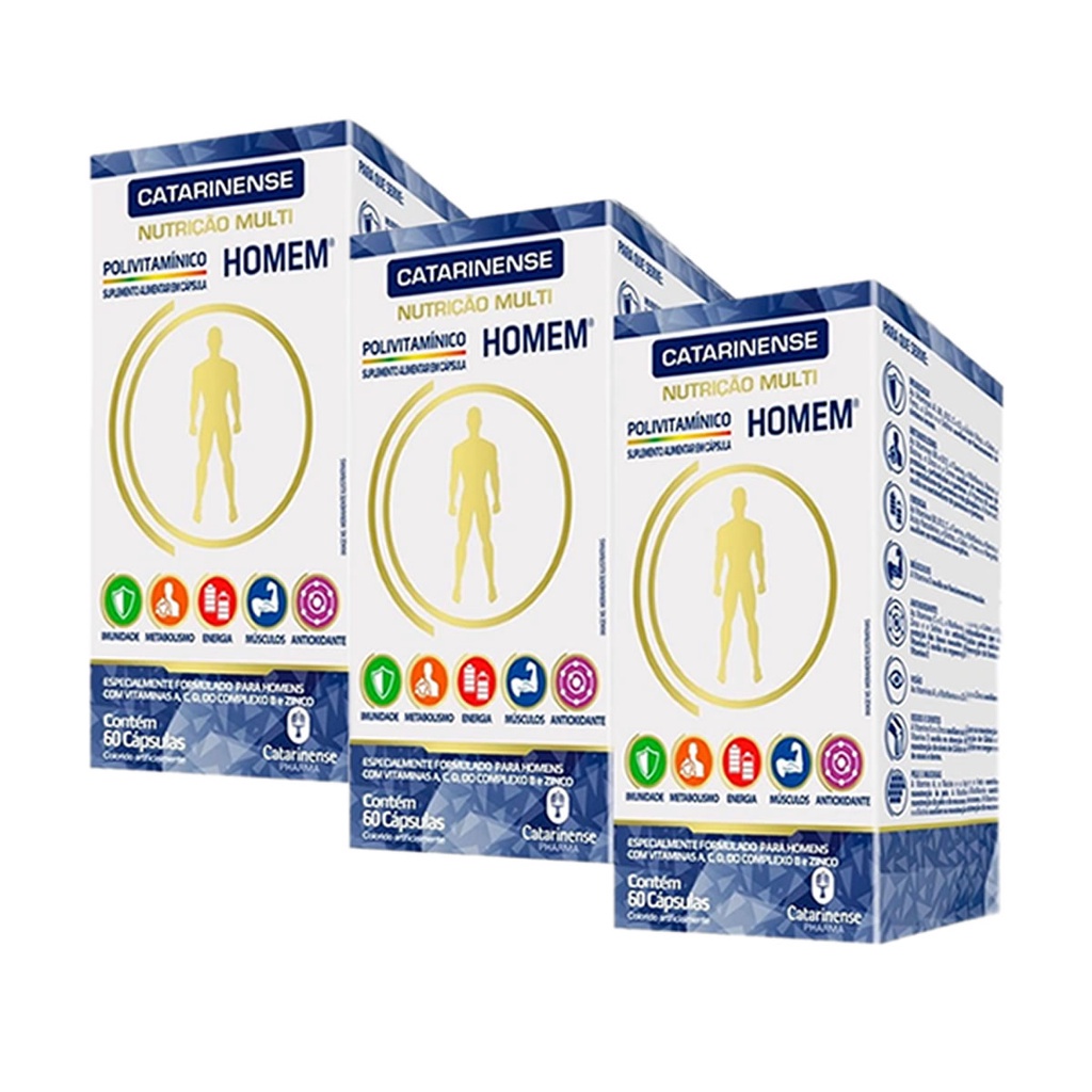 Kit 3 Polivitaminico Homem 60 Cápsulas - Catarinense
