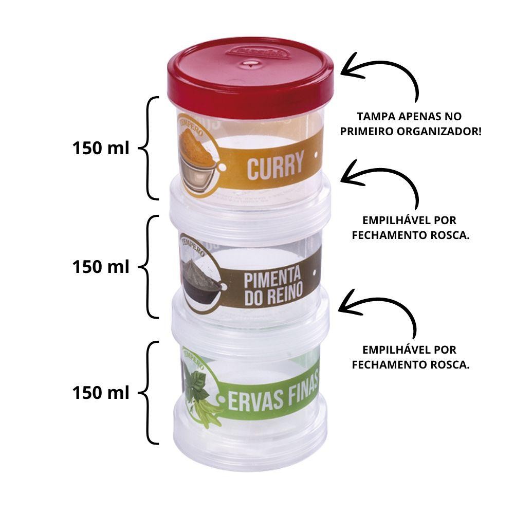 Kit 3 Porta Condimentos Temperos Organizador 4 Plasútil