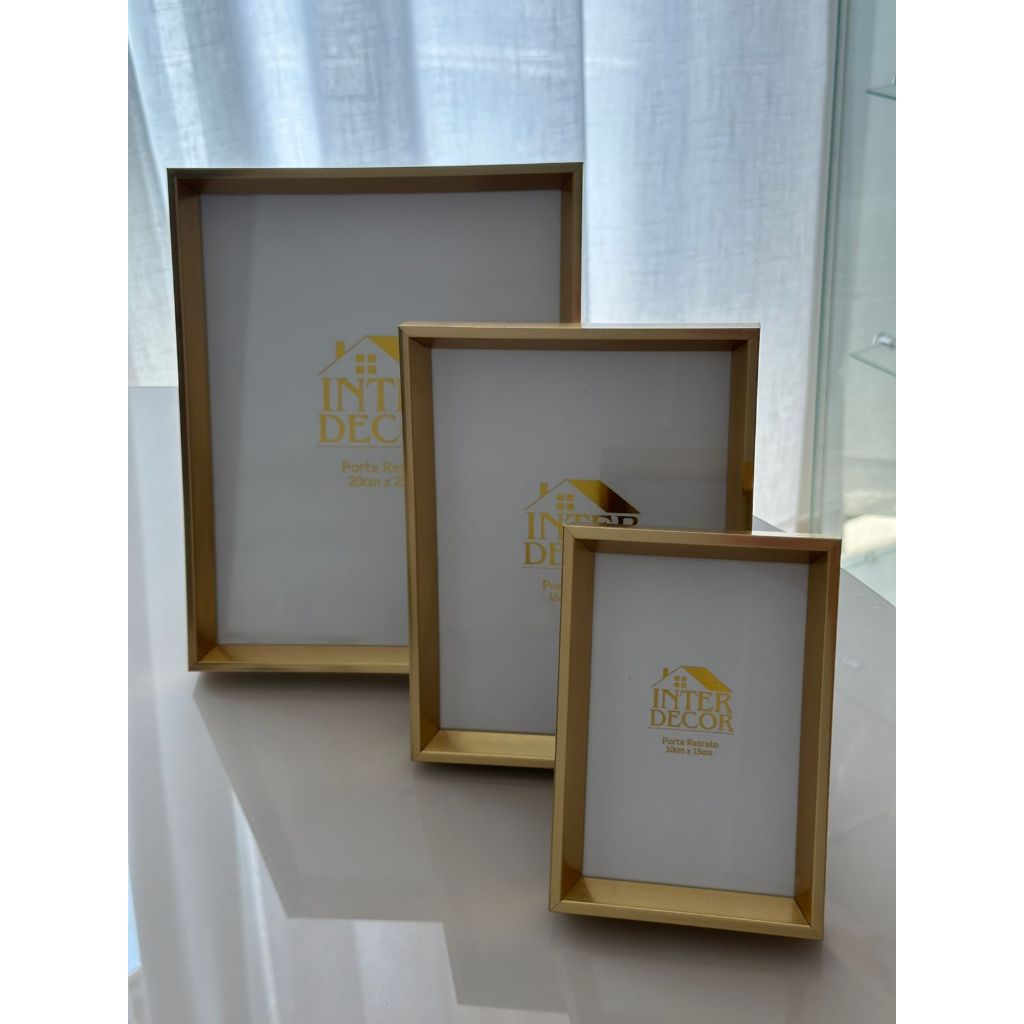 Kit 3 Porta Retrato Dourado Moldura MDF e Visor Vidro 10x15/15x20/20x25 Inter Decor