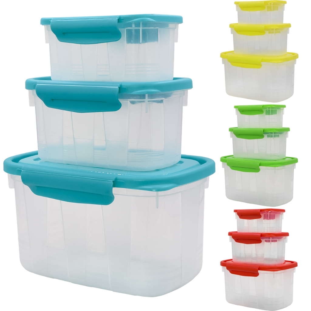 Kit 3 Potes 460/850/2200ml C/ Trava P/ Marmita Reutilizável Fitness Microondas/Freezer