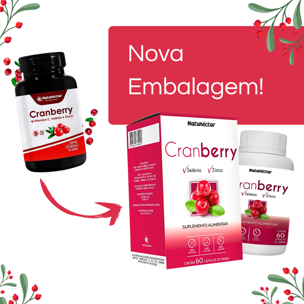 DESCRIÇÃO DO SUPLEMENTO ALIMENTAR: KIT COM 3 POTES DE CRANBERRY, SELÊNIO E ZINCO SUPLEMENTO ALIMENTAR 60 CÁPSULAS DE 500MG NATUNÉCTAR = 180 CÁPSULAS ATENÇÃO: PRODUTO NATURAL COMPOSIÇÃO NUTRICIONAL: PORÇÃO DE 1G (2 CÁPSULAS) VALOR ENERGÉTICO 0KCAL PROANTOCIANIDINAS 8,5MG SELÊNIO 68MCG ZINCO 14MG INGREDIENTES: CRANBERRY EM PÓ, SELÊNIO E ZINCO 0% DE AÇÚCAR 0% DE LACTOSE 0% DE GLÚTEN SUGESTÃO DE USO: RECOMENDA-SE A INGESTÃO DE 1 A 2 CÁPSULAS AO DIA, JUNTO COM AS PRINCIPAIS REFEIÇÕES. FABRICADO POR: NATUNÉCTAR PRODUTO DISPENSADO DE REGISTRO CONFORME RDC 240/2018 PRODUTO INDICADO PARA GRUPO POPULACIONAL: 19 ANOS MANTER FORA DO ALCANCE DE CRIANÇAS. NÃO EXCEDER A RECOMENDAÇÃO DIARIA ATENÇÃO: ESTE PRODUTO NÃO DEVE SER CONSUMIDO POR GESTANTES, LACTANTES E CRIANÇAS EXCETO SOB SUPERVISÃO MÉDICA.