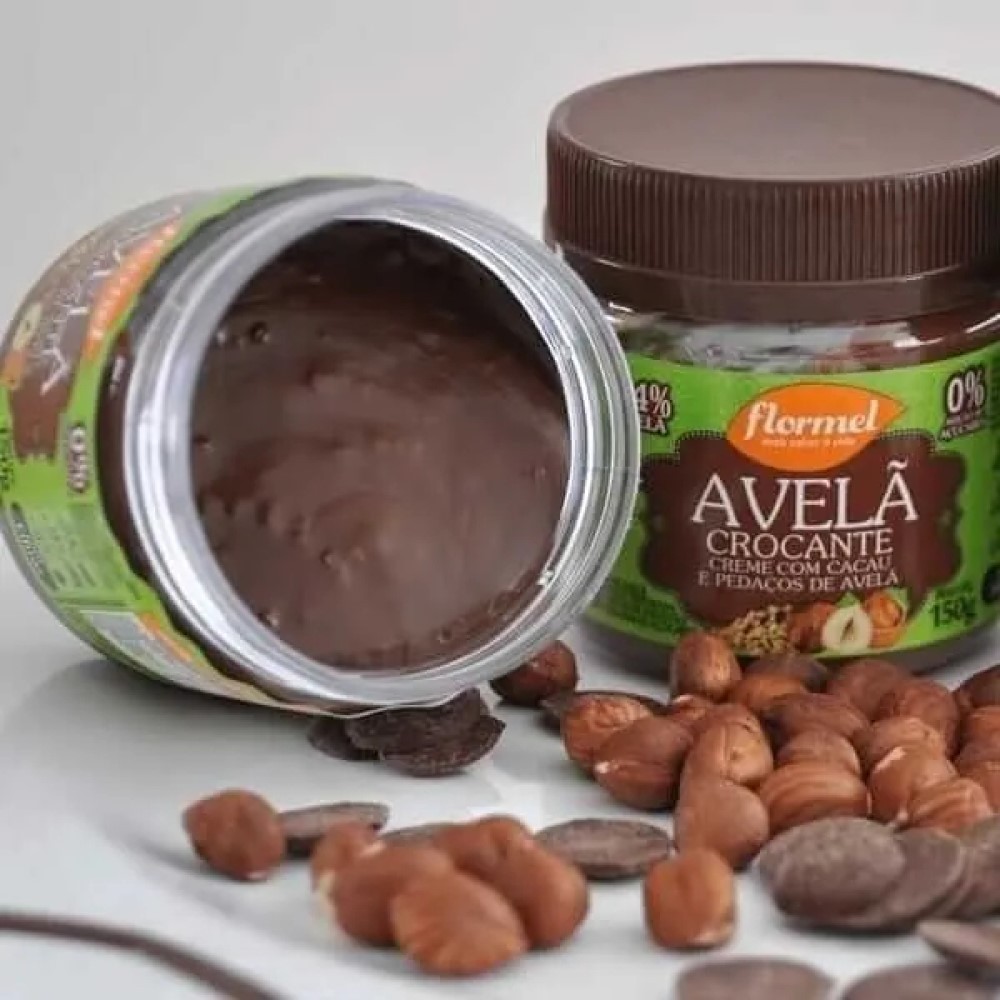 Kit 3 Potes de Creme de Avelã Flormel Crocante Zero Açúcar Sem Glúten Fonte de Fibras 150g
