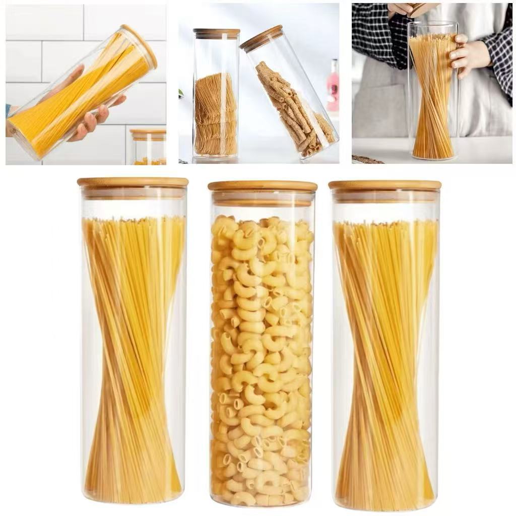 Kit 3 potes de vidro 1.7L tampa de bambu hermético madeira borossilicato porta alimentos macarrão