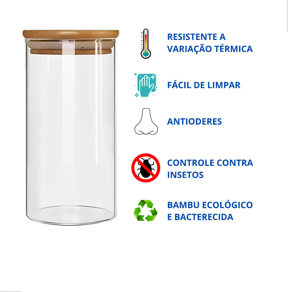 🌟 ENVIO EM ATÉ 24H PARA TODO O BRASIL! 🌟 Explore uma nova maneira de armazenamento de alimentos com nosso Kit de 3 Potes Herméticos de Vidro com tampa de bambu. Projetados para unir estilo, funcionalidade e praticidade, esses potes são a solução ideal para manter seus alimentos frescos por mais tempo, sem comprometer a estética da sua cozinha. BENEFÍCIOS: 🧊 Preserve o Frescor: Cada pote hermético é cuidadosamente projetado com uma tampa de bambu e borracha de silicone de vedação, garantindo que seus alimentos permaneçam frescos e saborosos por mais tempo. Diga adeus ao desperdício! 🥣 Qualidade e Durabilidade: Feitos em vidro de alta qualidade, resistentes a manchas, odores e não absorvem sabores, mantendo a integridade dos alimentos. ✨ Design Elegante e Funcional: Com 1500ml de capacidade, ideais para grãos, cereais, farinhas, castanhas e muito mais. Visual clean que valoriza a decoração da cozinha. 🧺 Versatilidade no Uso: Podem ser usados na despensa, na geladeira ou até mesmo na mesa. Organização e praticidade em um só produto! CARACTERÍSTICAS: 🏺 Material do pote: Vidro 🌿 Material da tampa: Bambu e Silicone 📏 Altura: 22cm 📐 Diâmetro: 10cm ⚖️ Capacidade: 1500ml ITENS INCLUSOS: ✅ Kit com a quantidade de potes selecionados 📦 O frete será GRÁTIS em sua compra. 📦 Garantia do vendedor: 30 dias