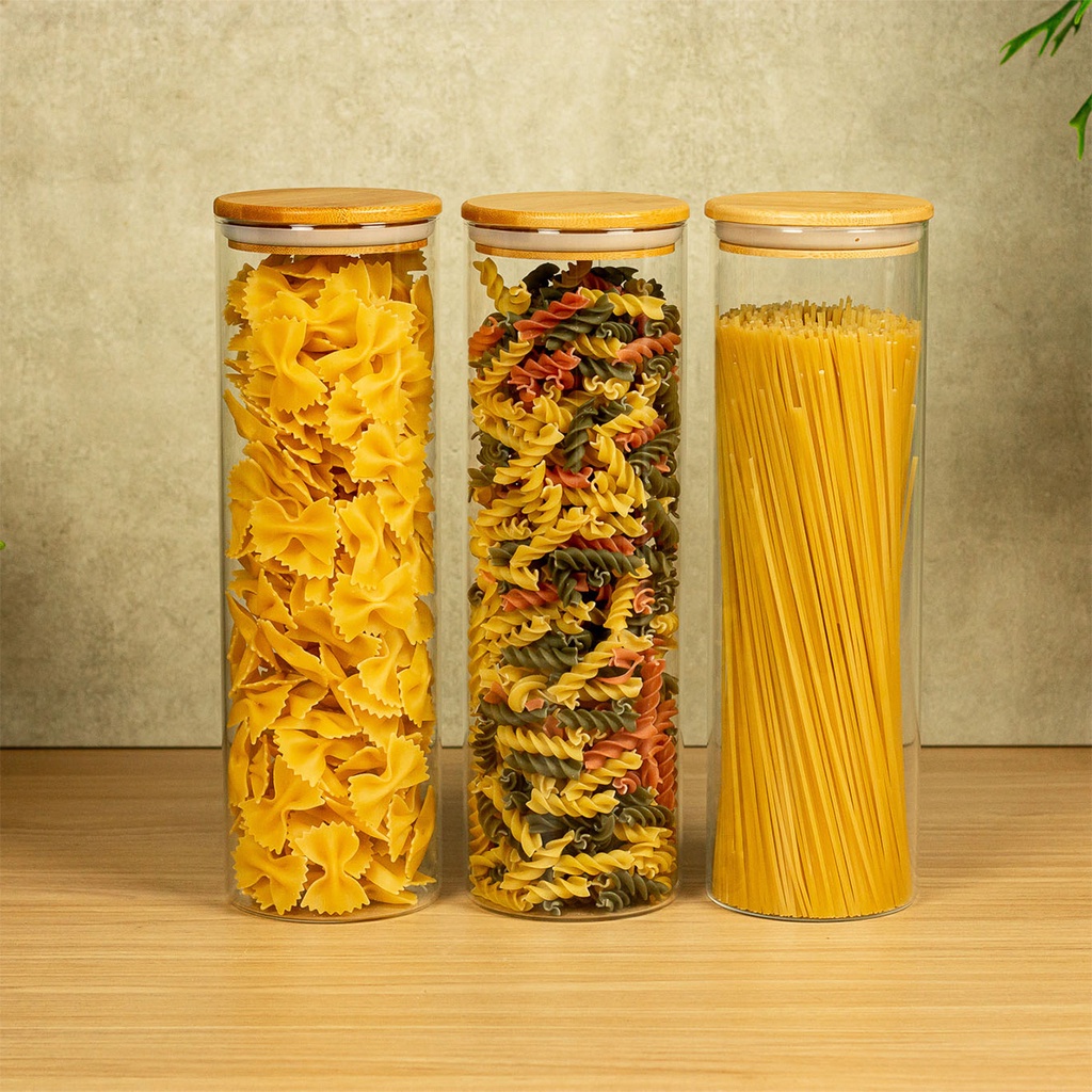 Kit 3 potes de vidro com tampa de bambu herméticos redondo 2L - Oikos