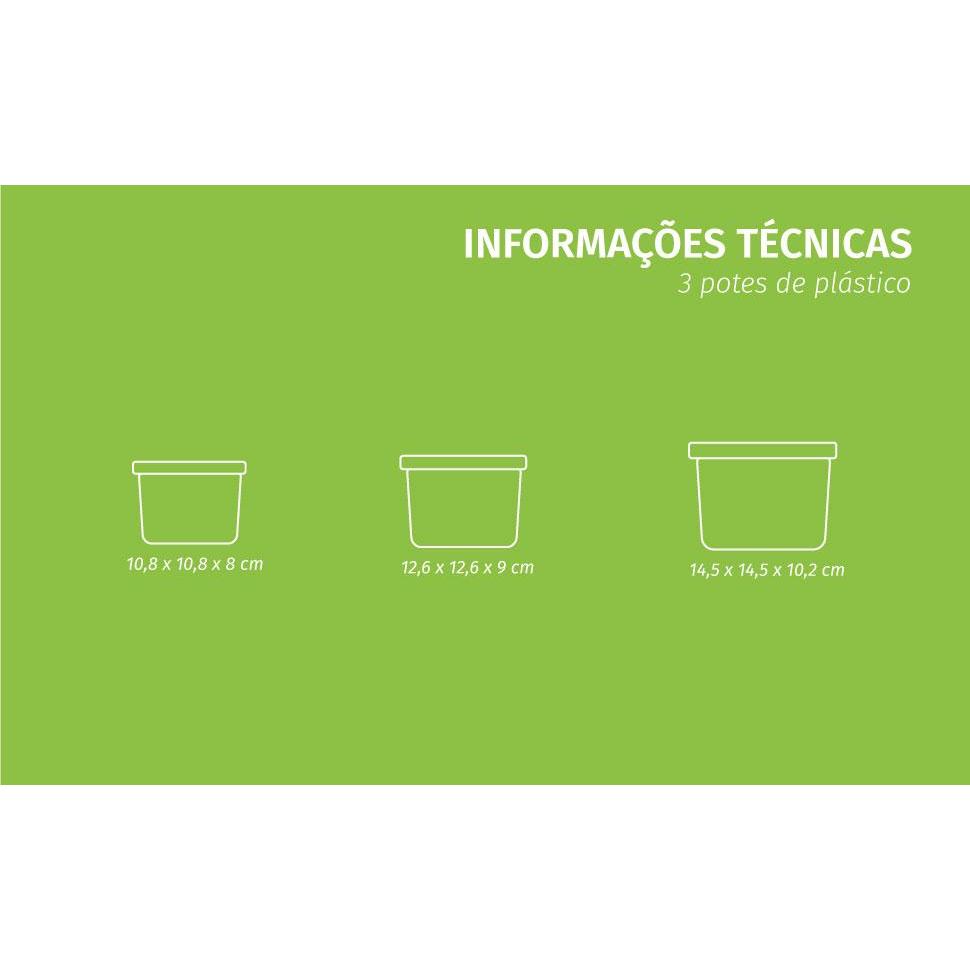 Kit 3 Potes Encaixáveis Quadrados Plástico Conect Plasútil