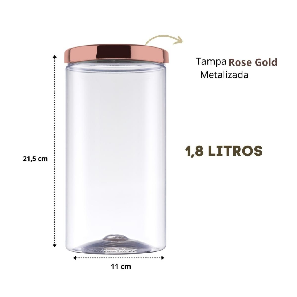 Kit 3 Potes Plástico Tampa Rose 1.8 Litro Bolachas Biscoito
