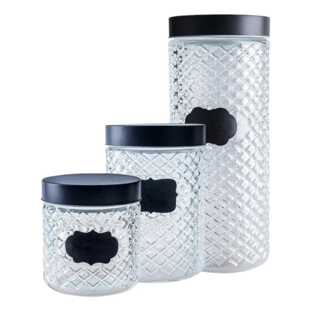 Kit 3 Potes Vidro Porta Condimentos com Tampa de rosca em metal 800ml 1200ml e 2 litros