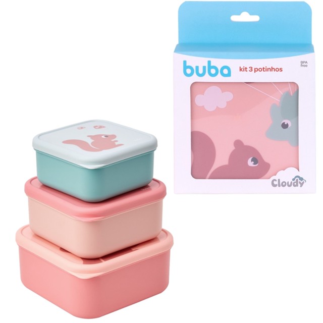 Kit 3 Potinhos Esquilo para armazenar comida e lanche Infantil 21762 - Buba