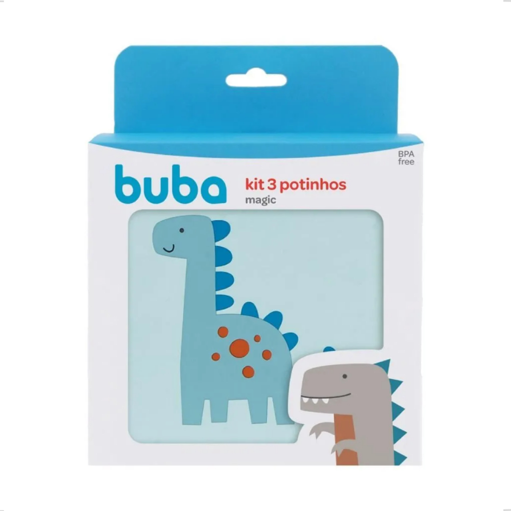 Kit 3 Potinhos Papa Lancheira Comida Escolar Magic Dino Dinossauro Livre BPA Tampa Azul Pote Buba