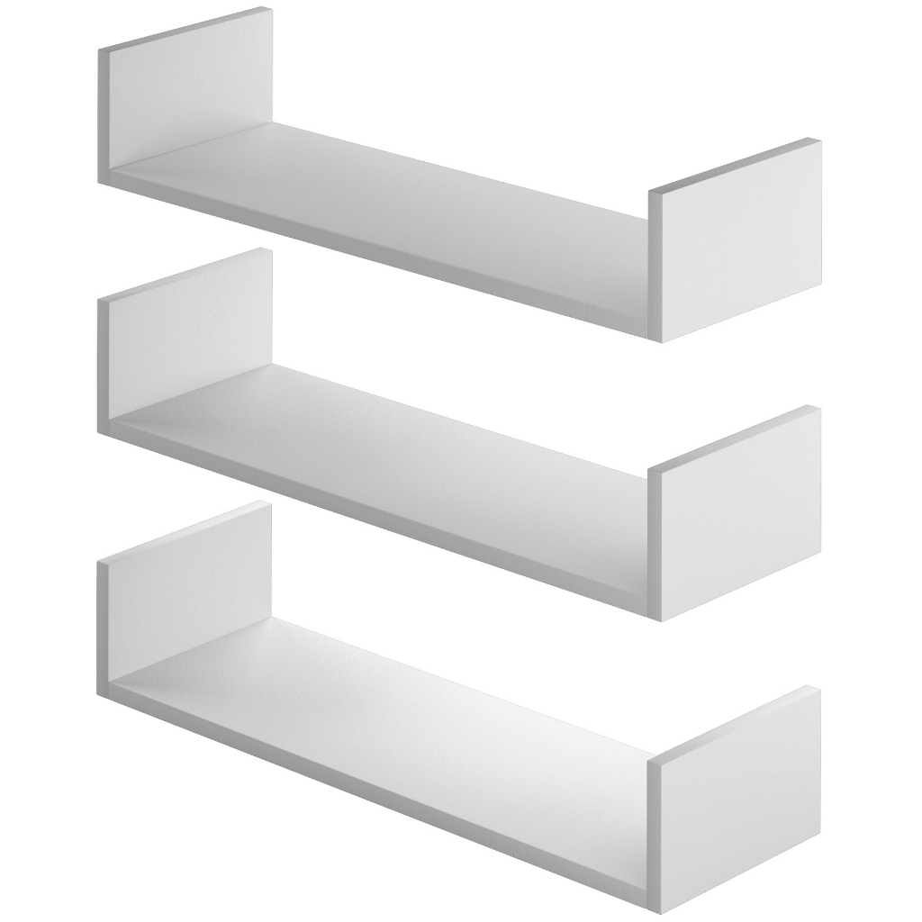 Kit 3 Prateleiras de Parede Multiuso Nicho U 60x20cm em Mdf Reforçado 15mm