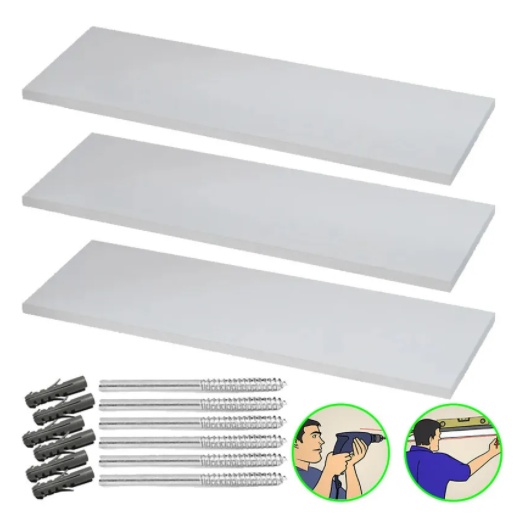 Kit 3 Prateleiras lisa 50x20cm Suporte invisível Branco De Parede Livro Organizadora Cozinha Quarto
