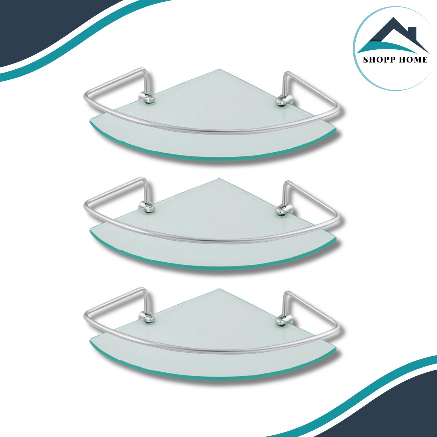 Kit 3 Prateleiras Porta Shampoo de Canto para Banheiro,Alumínio + Vidro, Antiferrugem, Suporte de Parede Organizador.