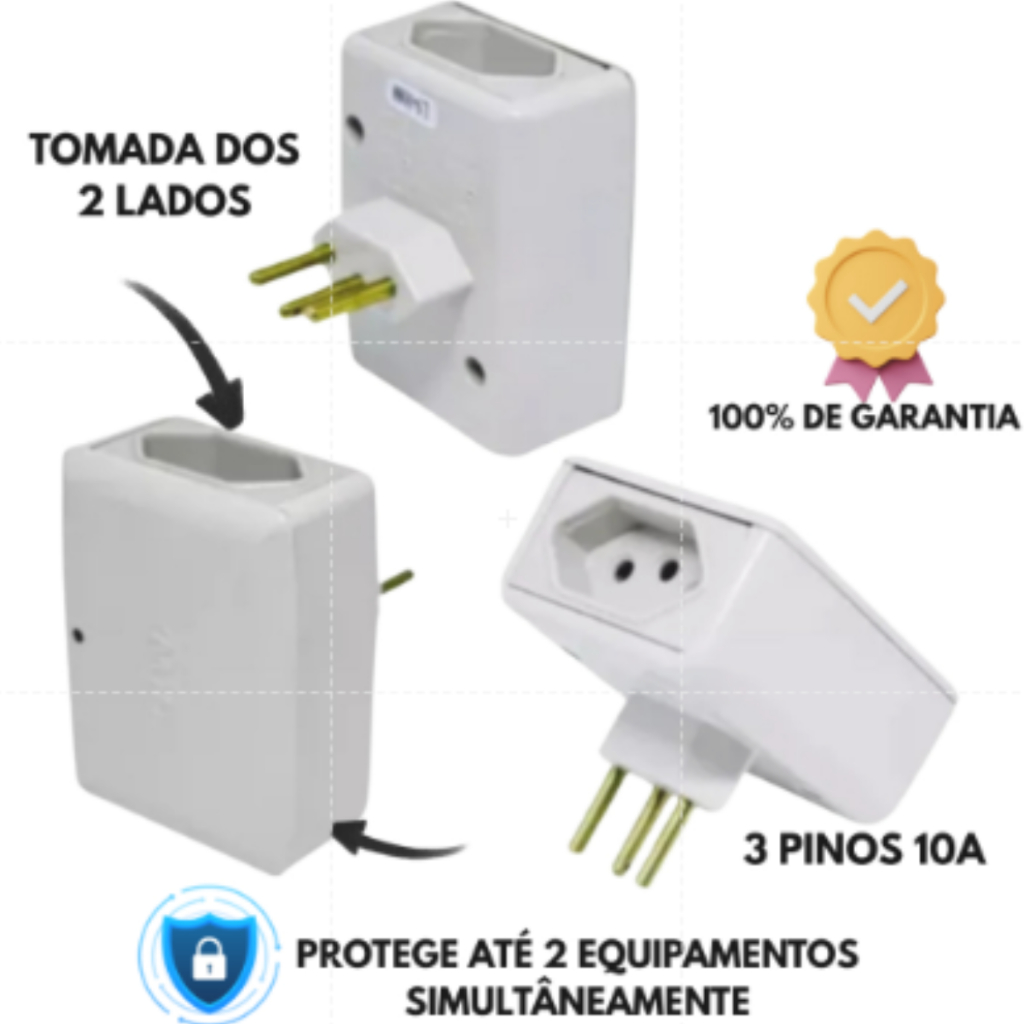 Kit 3 Protetores Contra Picos Raios Surtos Eletricos 2 Tomadas TV Celular Fogão Notebook