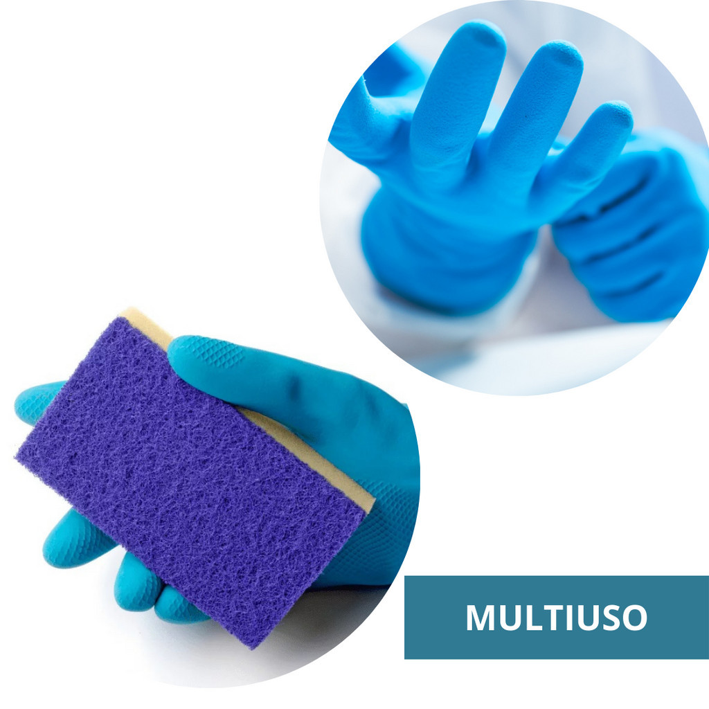 Kit 3 Prs Luva De Latex Natural Verniz Silver Slim Azul Antialérgica Volk Para Limpeza Lavar Louça Proteção Epi