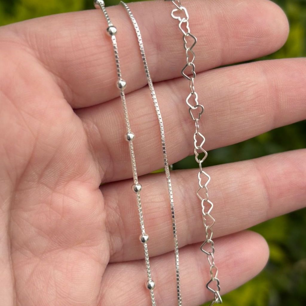 Kit 3 Pulseiras Prata 925 Bolinha Coração e Veneziana