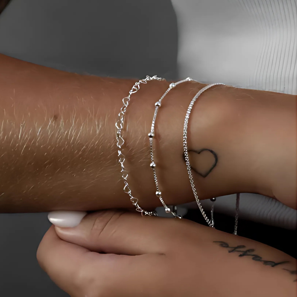 Kit 3 Pulseiras Prata 925 Modelos Coração Bolinha e Pipoca Delicadas
