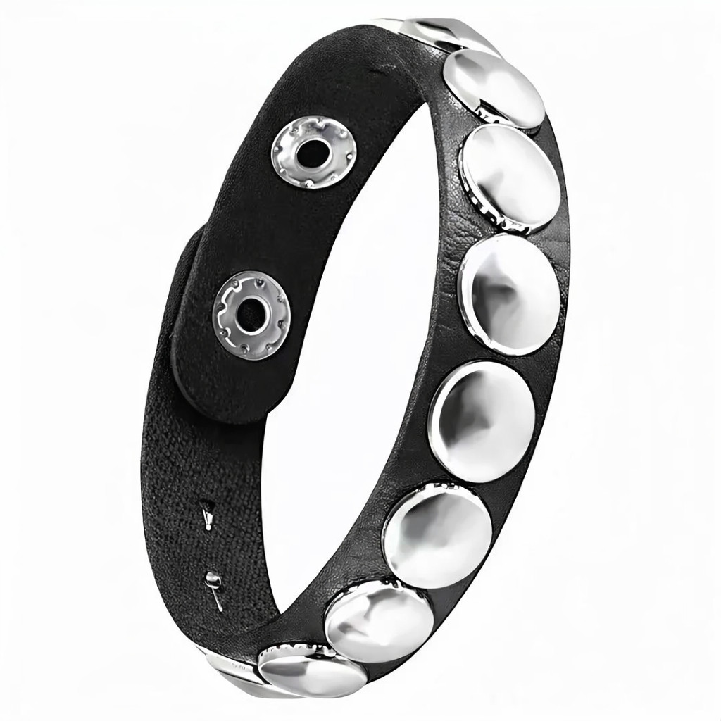 Kit 3 Pulseiras Punk Rock Masculina Couro Preto com Corrente e Rebites Prata / Gun Black Ajustável Unissex