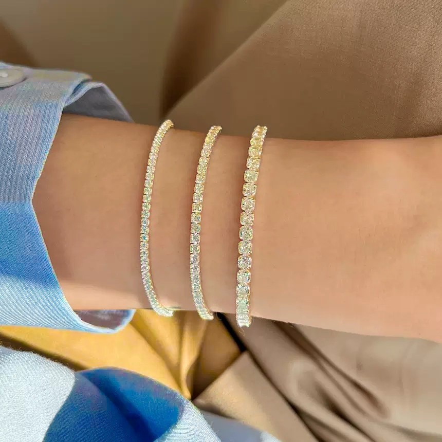 Kit 3 Pulseiras Semijoia Feminina Riviera Zirconia Crital Banhado a ouro 18k prata 925
