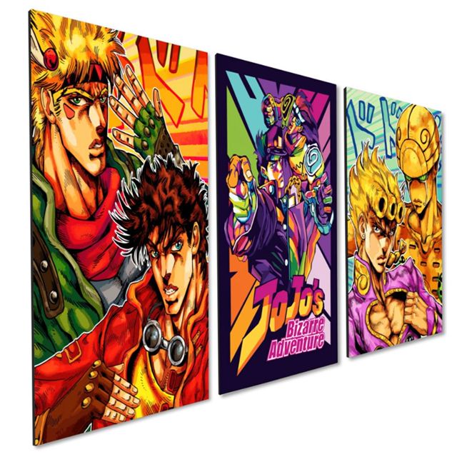 kit 3 Quadro Decorativo Anime JoJo's Bizarre Adventure Quarto Sala Geek