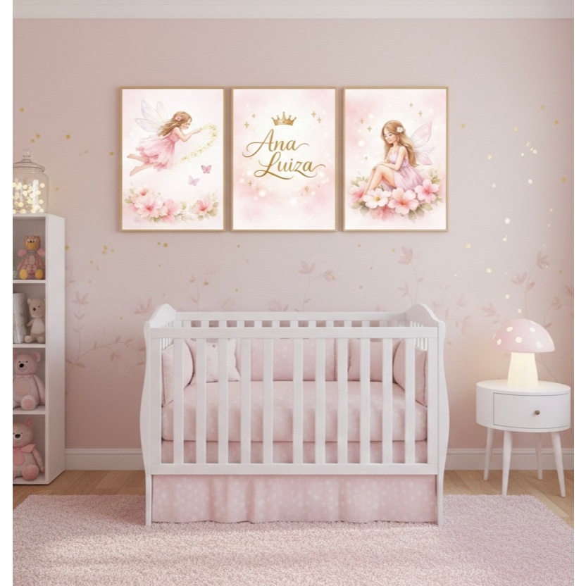 | Kit 3 Quadro Personalizados Nome Menina Fada Rosa Decoração Parede ... este produto | R$ 49,99 | 25% | 4.7/5 | — |