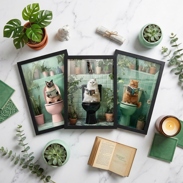kit 3 quadros 18x24 cm gatos banheiro lavabo moldura vidro aparece na subcategoria Molduras para Fotos e Decoração de Parede (de Casa e Construção) na Shopee Brasil por R$ 69,90. Avaliado em 5.0/5 pelos compradores e 9 unidades vendidas, este produto se destaca pelo excelente custo-benefício.